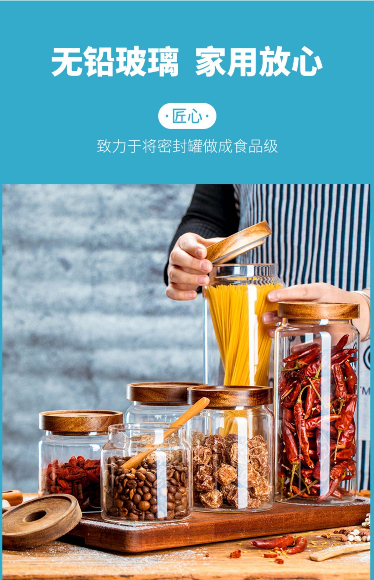 Diameter 9cm* height 7cm+ Acacia cap 250ml | Diameter 9cm* height 10cm+ Acacia wood cover 450ml | Diameter 9cm* Height 15cm+ Acacia cap 750ml | Diameter 9cm* Height 19cm+ Acacia lid 950ml | Diameter 9cm* Height 29.5cm+ Acacia wood cover 1550ml