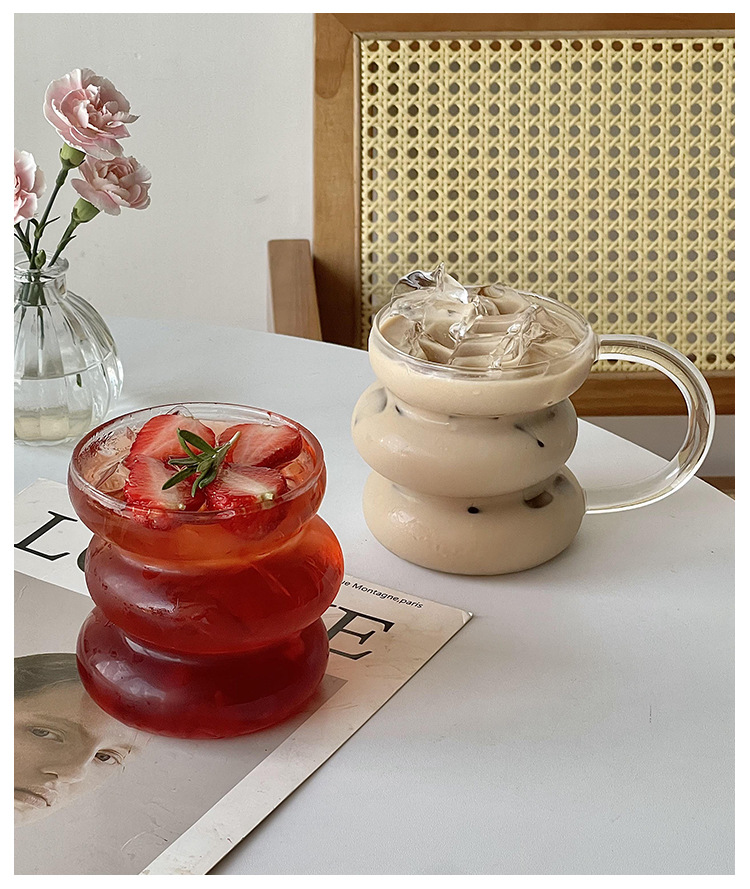 Ins Style Niche Design Sense With Glass Cup Fruit Tea Cup High Borosilicate Heat Resistant Coffee Cold Drink Milk Tea Cup