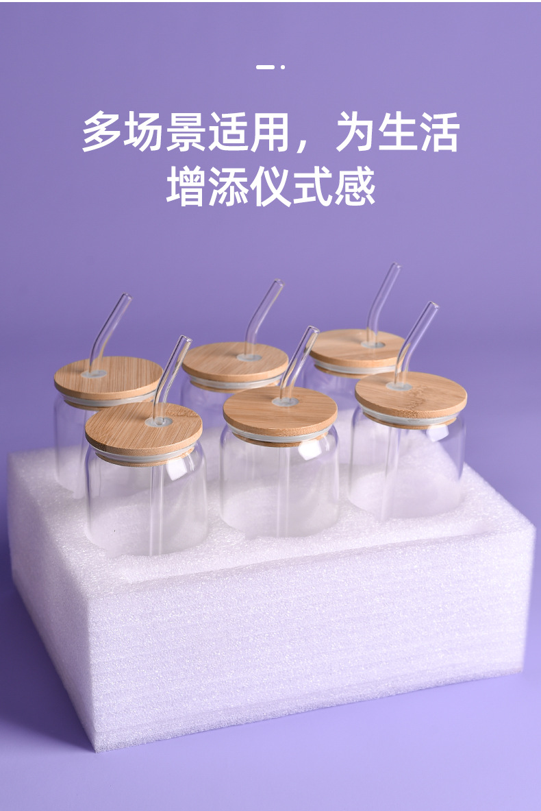 Wholesale Glass Coke Cup 6-Piece Set With Straw Large Capacity Single-Layer Cup Milk Tea Milk Coke Can Custom